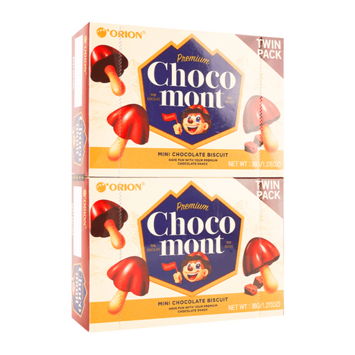 OrionChoco Boy Chocolate Mushroom Cookies Twin Pack 32gx2 A playful treat that’s as fun to eat as it is delicious. These mushroom-shaped biscuits featur...