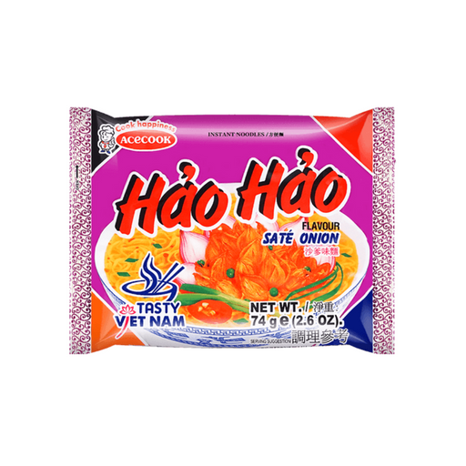 Hao HaoHao Hao Hot Sate Onion Flavor Noodles, 77g x 5 Pack A flavorful instant noodle from Vietnam that combines the heat of sate chili wi...