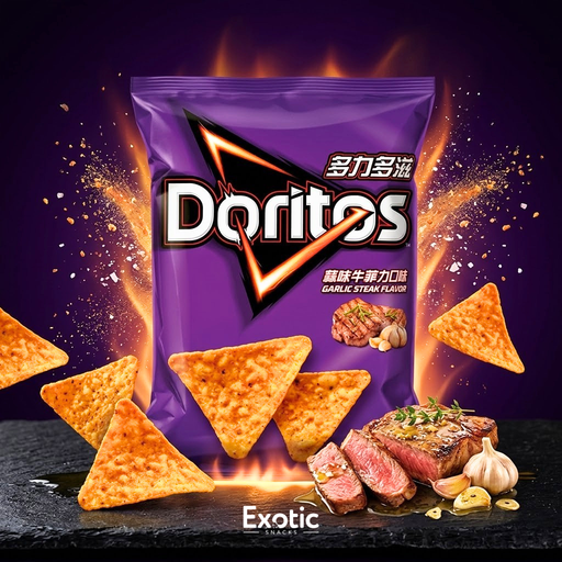 Doritos Garlic Steak Flavored Corn Chips, 48g Get ready for a bold flavor punch straight from Thail...