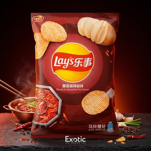 Lay's Numb & Spicy Hot Pot Flavor Chips, 70g Two words: Numb & Spicy. A replication of Sichuan spicy hot pot, first a delightful rich hot p...