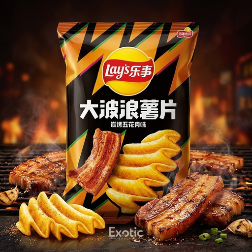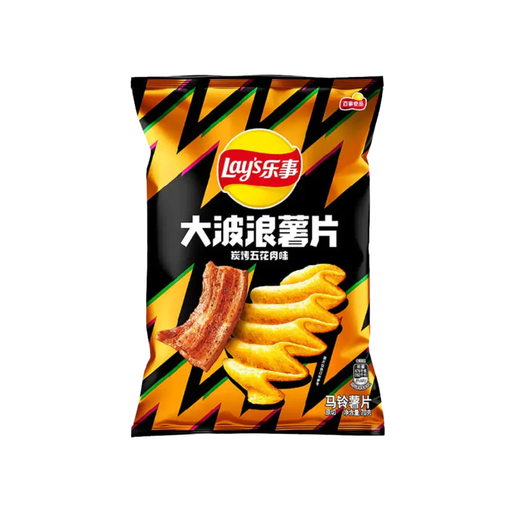 Lay's Wavy Grilled Pork Belly Potato Flavor Chips, 70g Indulge in the savory delight of Lay's Wavy Grilled Pork Belly Potato Flavor Chips! These cr...