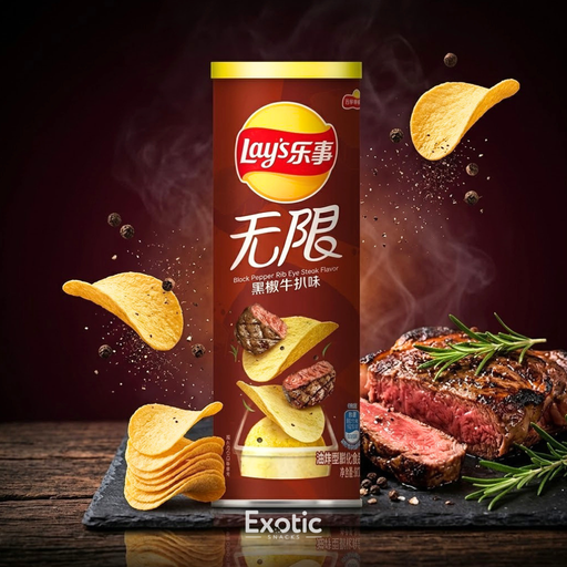 Lay’s Black Pepper Rib Eye Steak Flavored Potato Chips, 104g Indulge in the bold and savory taste of Lay’s Black Pepper Rib Eye Steak Flavor ...