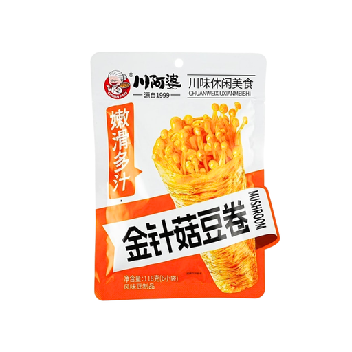 Chuan's Delicious FoodChuan's Delicious Food Enoki Mushroom Tofu Roll, 118g A savory and spicy snack made with tender enoki mushrooms wrapped in delicate layers of tofu ...